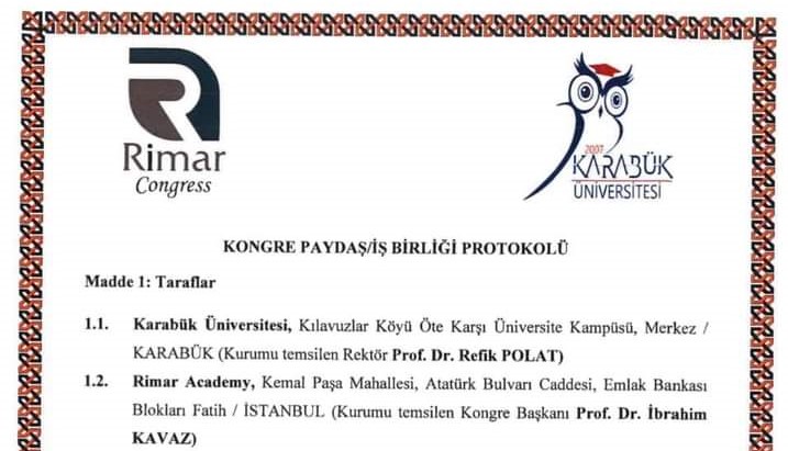 وبحسب اتفاق التعاون, فقد أصبحت جامعة كارابوك شريكة أكاديمية ريمار وجهة رئيسية تشارك بتنظيم مؤتمر ريمار العلمي الذي يعقد في إسطنبول بنظام الحضور ونظام أونلاين أيام 06-08 نوفمبر/تشرين الثاني 2020.