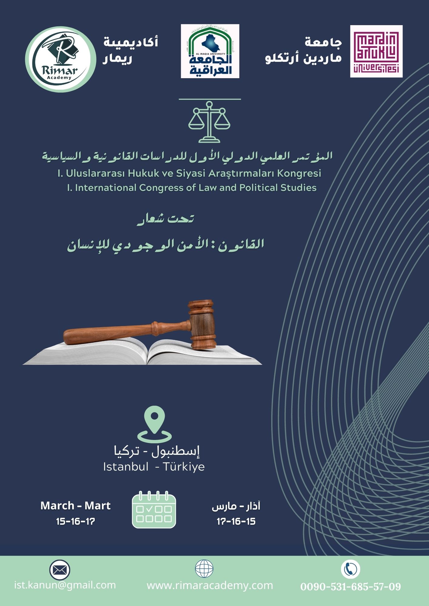 تستعد جامعة ماردين آرتوكلو الحكومية التركية والجامعة العراقية بالتعاون مع أكاديمية ريمار التركية لإقامة المؤتمر العلمي الدولي الأول للدراسات القانونية والسياسية.