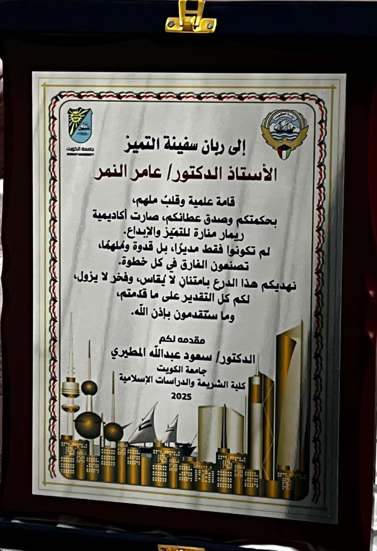 تكريم د. سعود عبدالله المطيري من جامعة الكويت لمدير أكاديمية ريمار د. عامر كابلان